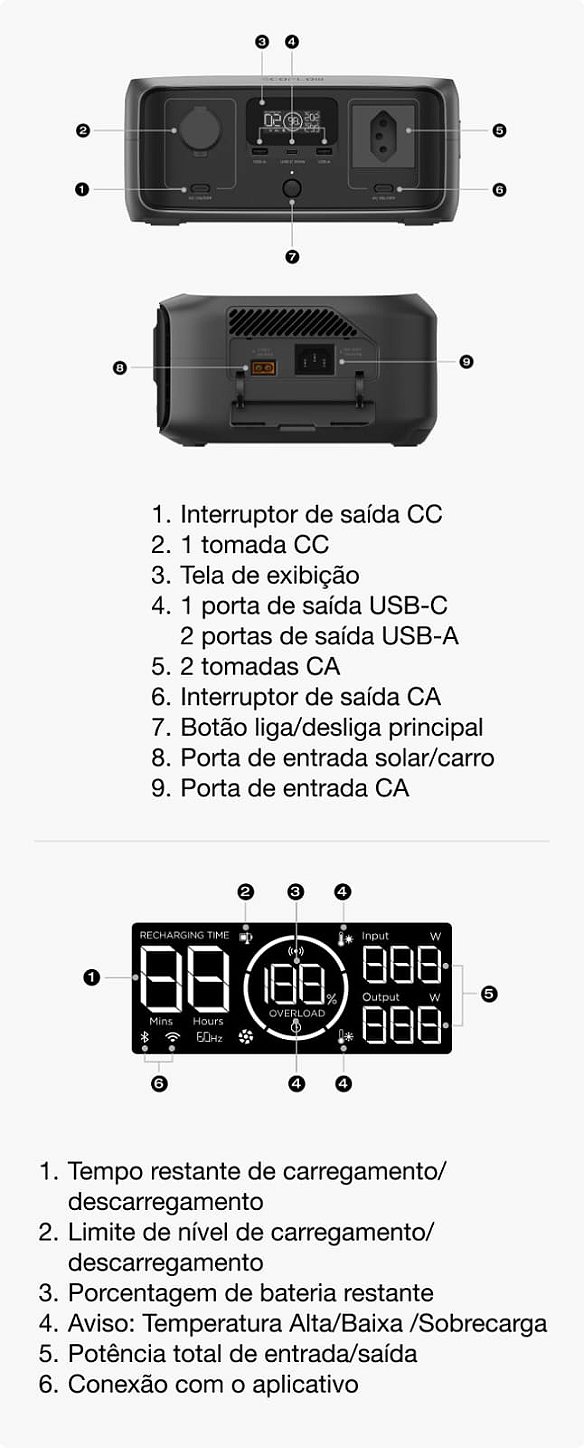 Com bateria LiFePO4, recarga ultrarrápida, UPS de 10 ms e controle via aplicativo, ela é perfeita para backup residencial, viagens, camping, motorhome, Starlink e uso off grid.